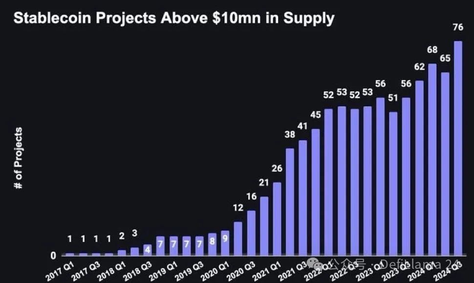 现在还有超过 76 个稳定币项目,其供应量超过 1000 万美元。