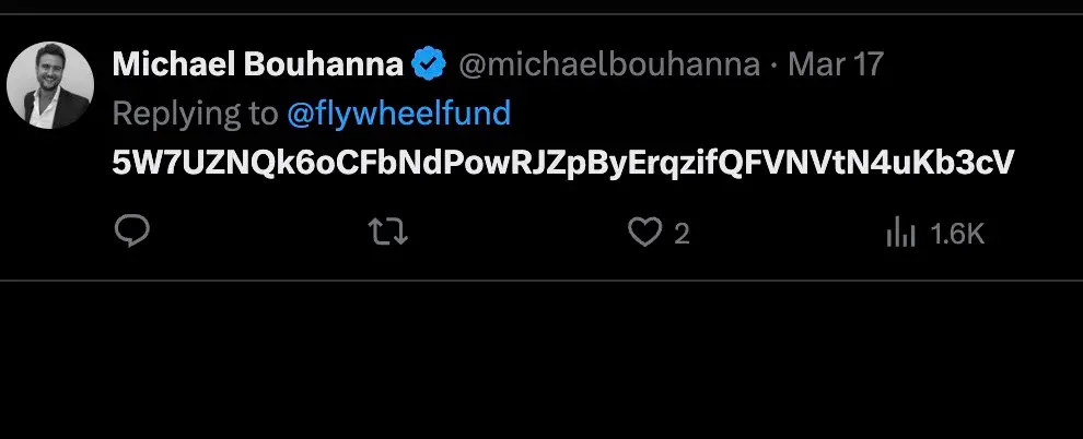 有推特用户为了进一步证明故事的可靠性,便在推特上问 Michael Bouhanna 相关地址到底是不是他的。也许是略有心虚或者不想造成不必要的影响,Michael Bouhanna 在炒作最热闹的阶段把公布自己钱包地址的推文删除了。