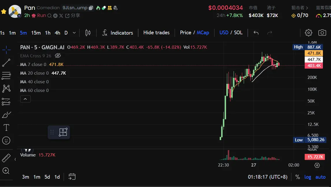 概念简单易懂,蹭的角度比较偏,而且价格表现也一般。且 GMGN.AI 显示跑路概率为 100%,推测为 Dev 的蹭热点流水盘,仅供观察,不建议参与。