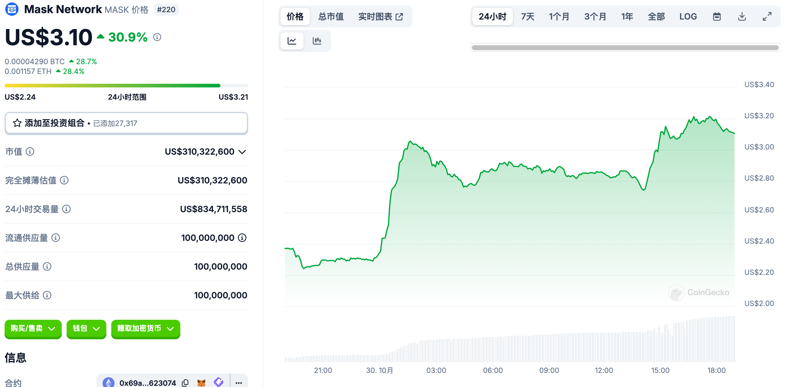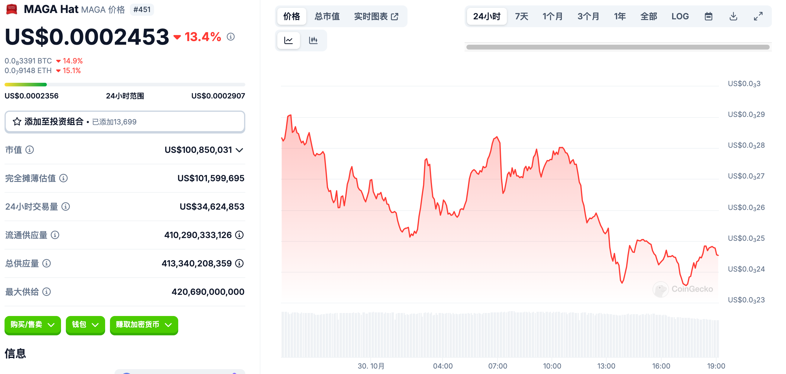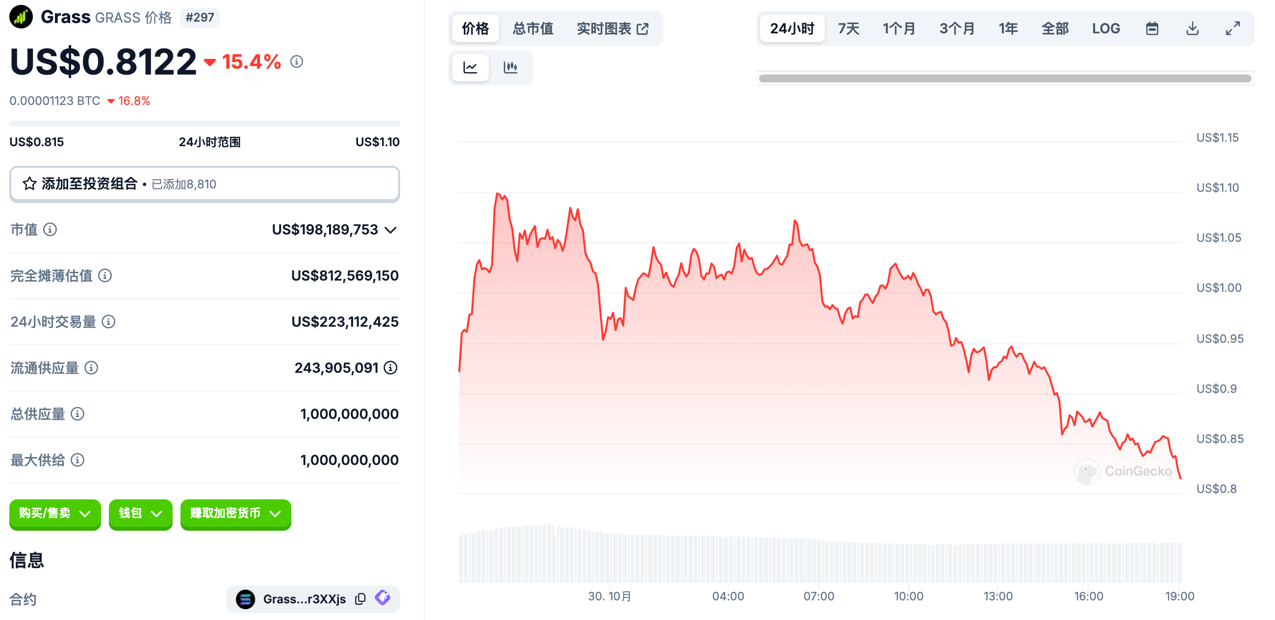 10 月 30 日代币波动情况,按 24 小时交易量筛选并排列