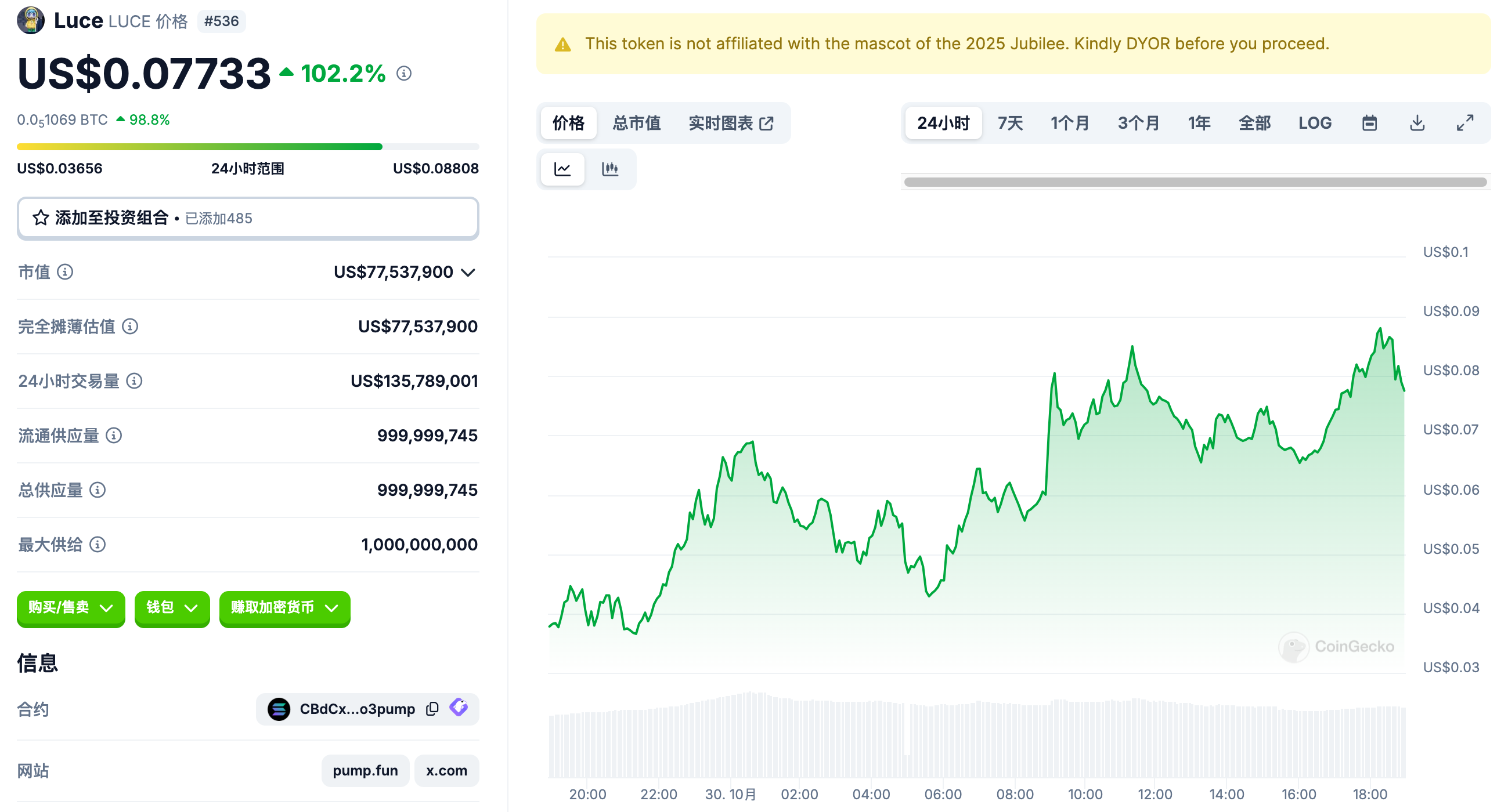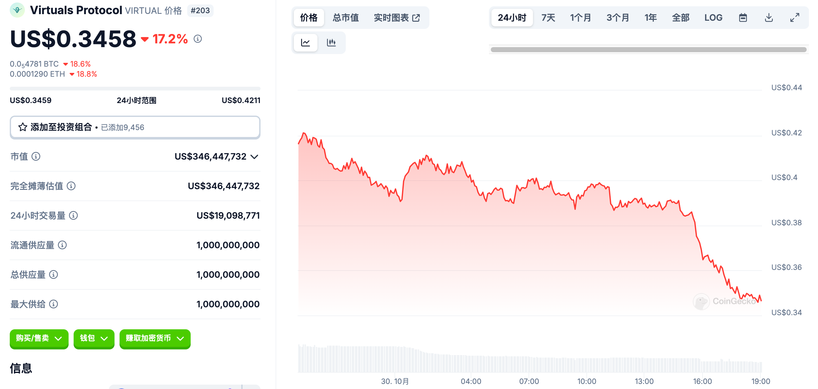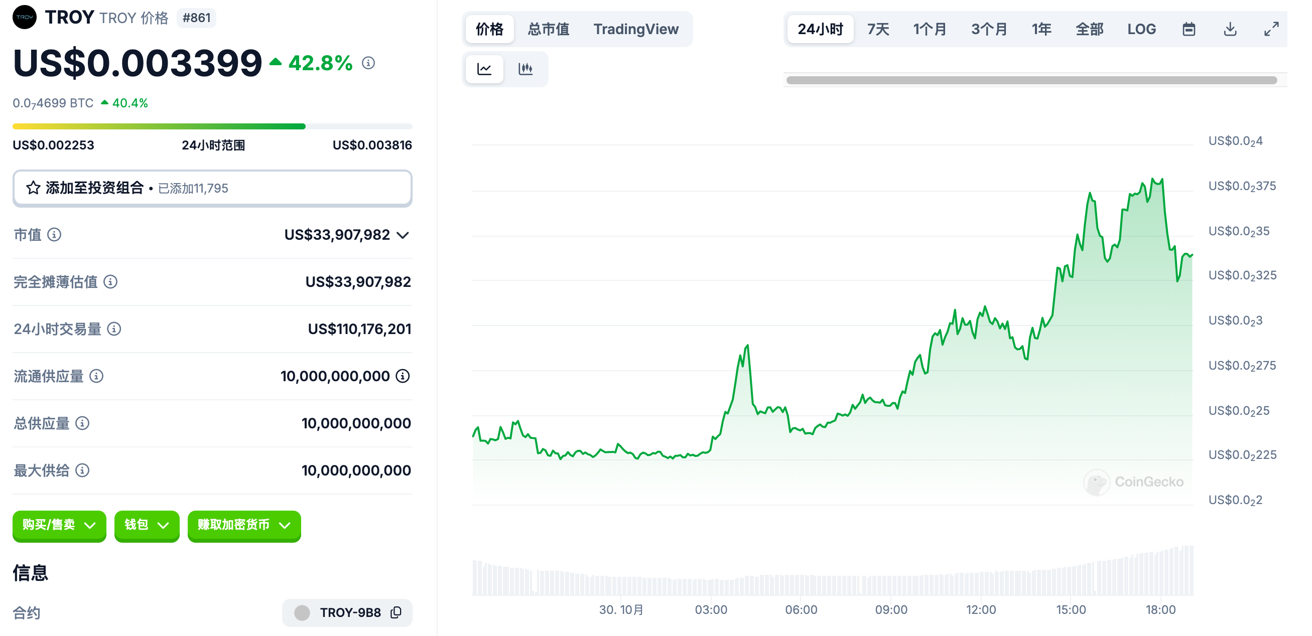 10 月 30 日代币波动情况,按 24 小时交易量筛选并排列