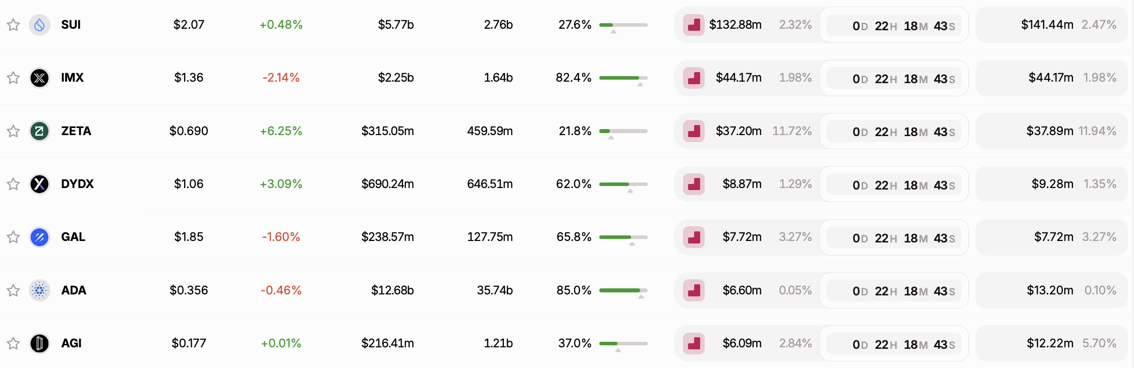 每日市场整体资金热度(根据资金费率反映)与代币解锁