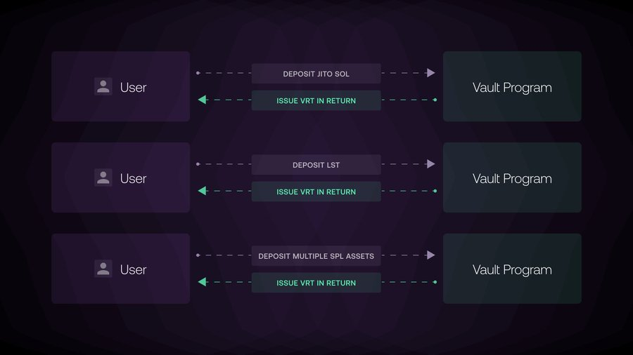 而金库程序则负责管理流动再质押代币(VRT)并通过 DAO 或自动化协议定制不同的再质押策略。这是用户参与再质押的主要界面。可以类比为,EigenLayer 的再质押角色在 Solana 上由再质押程序担任,而金库程序则类似于 EtherFi,在用户和核心再质押协议之间充当流动性层。