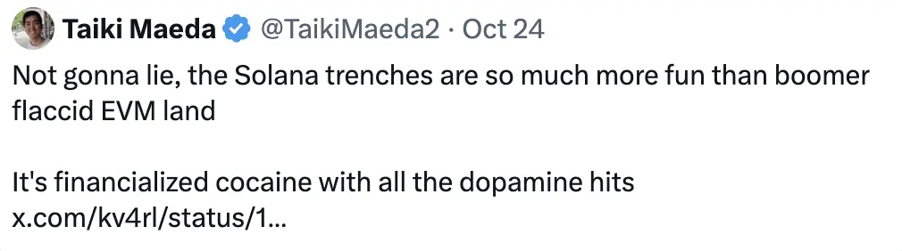然而,关于 Meme 币的情绪显著变化。现在对这个类别的兴趣远超几个月前,$GOAT 的报道就是一个很好的例子。即使是自称的中间投资者们也开始改变态度: