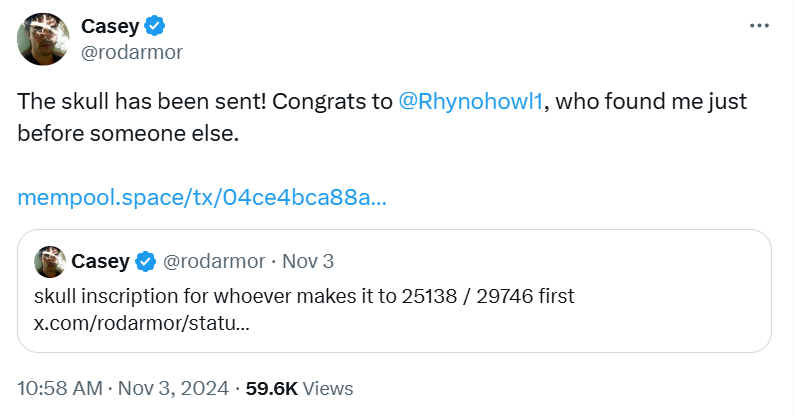 上周日,也就是 11 月 3 日,凌晨 5 点,Ordinals & 符文协议创始人 @rodarmor 发表了这样一条只有短短三句话的推文。