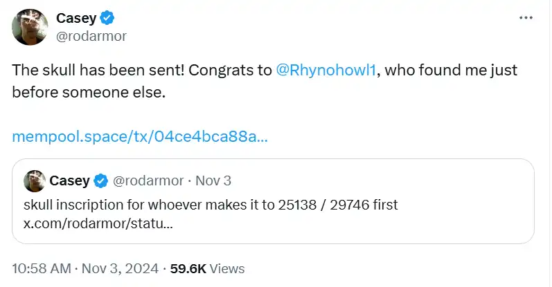 上周日,也就是 11 月 3 日,凌晨 5 点,Ordinals & 符文协议创始人 @rodarmor 发表了这样一条只有短短三句话的推文。