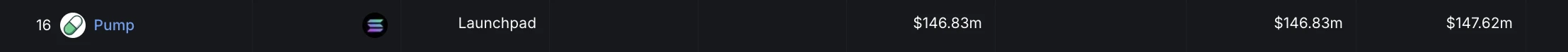 pump.fun 排行第 16 位