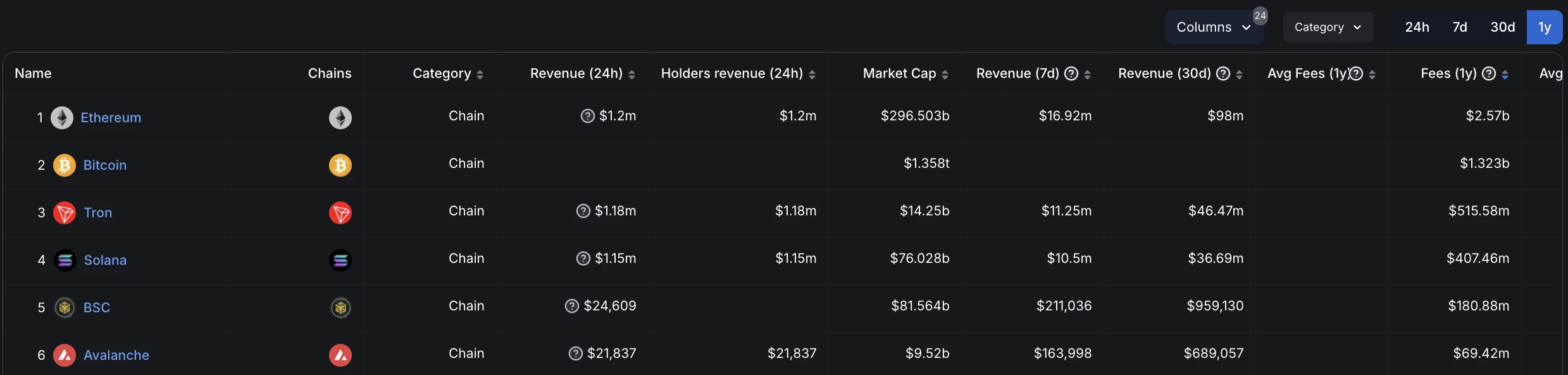 · 以太坊以近一年高达 25.7 亿美元的收入拔得头筹;