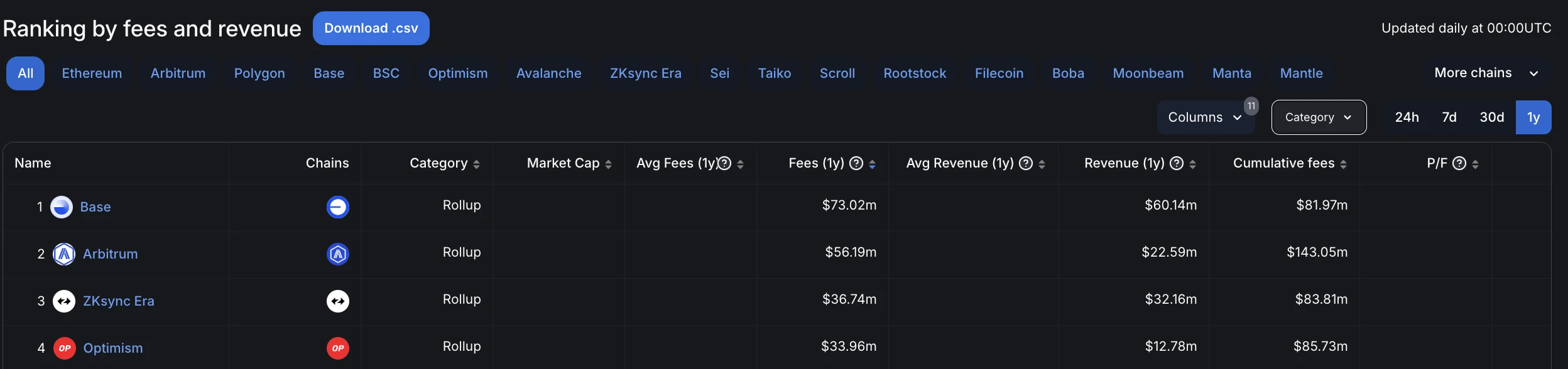 除了以上的主要类目以外,近一年协议收入排行前列的还有诸多「拓展类项目」——如包括 Base、Arbitrum、ZKsync Era、Optimism 在内的以太坊 L2 网络,其中——