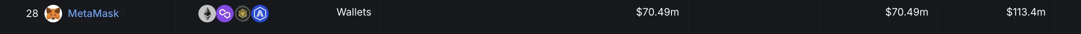 MetaMask(俗称小狐狸钱包)以 7049 万美元的近一年协议收入位于第 28 位。