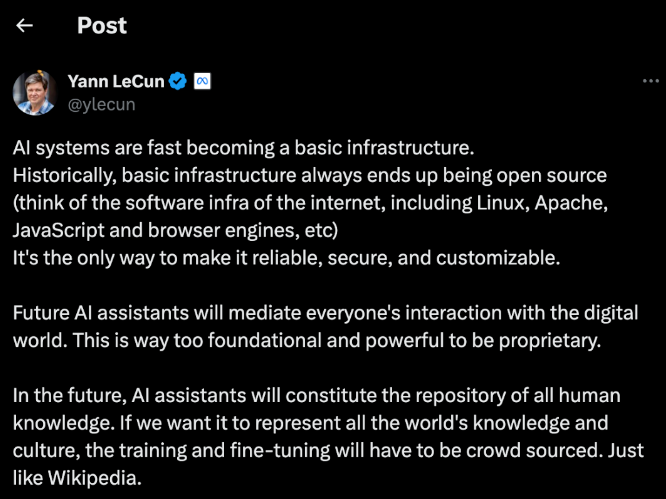 我们已经见证了大语言模型(LLM)在主流领域的迅猛普及,以及有关这项技术可能带来的风险的热烈讨论。很明显,AI 将对文化、政治和真相追求产生深远的影响。因此,我们作为全球化的社区,不能让少数科技巨头通过数据护城河来垄断人工智能,而应共同努力,构建去中心化的替代方案。