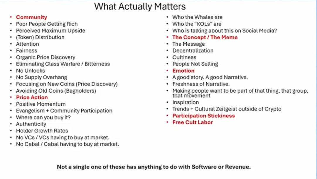 为此,我们认为 Murad 在 Meme Supercycle 的演讲里提出的 PvE Memecoins 非常形象生动,具体参考下面两图。