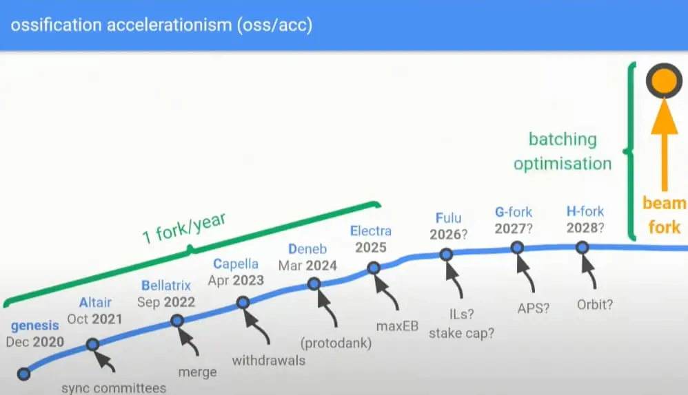 然而,在这些渐进式分叉之后,Justin Drake 认为,我们或将面临一个前所未有的挑战——Beam 分叉。这是一次共识层的「量子飞跃」,它能够将多个升级整合(batch)到一个单一的分叉中。