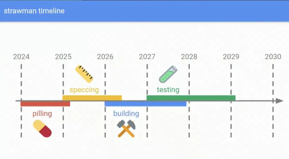 Justin Drake 为 Beam Chain 的启动制定了详细的计划,从 2025 年开始会启动相关规格制定过程,2026 年开始构建,而在 2027 年开始,就会启动相关测试,以确保 Beam Chain 达到生产级标准,并且可以安全部署到主网。从下面的路线图来看,主网部署时间可能会在 2029 年、2030 年以后上线。