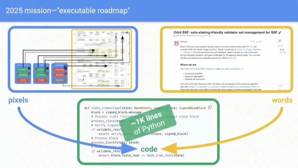 Justin Drake 打算下一步开始撰写可执行规范,这个规范最终将精简至大约 1000 行 Python 代码。