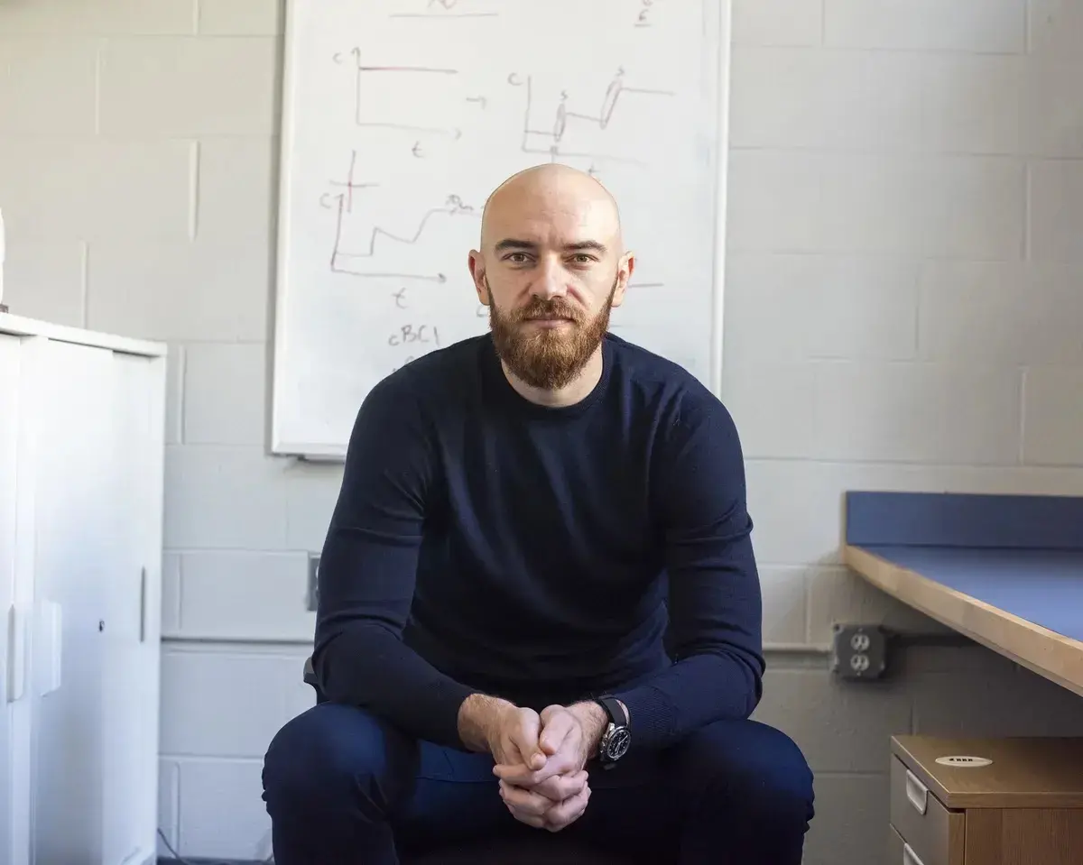Zvonimir Vrselja 坐在耶鲁大学的实验室里。图片来源:彭博商业周刊