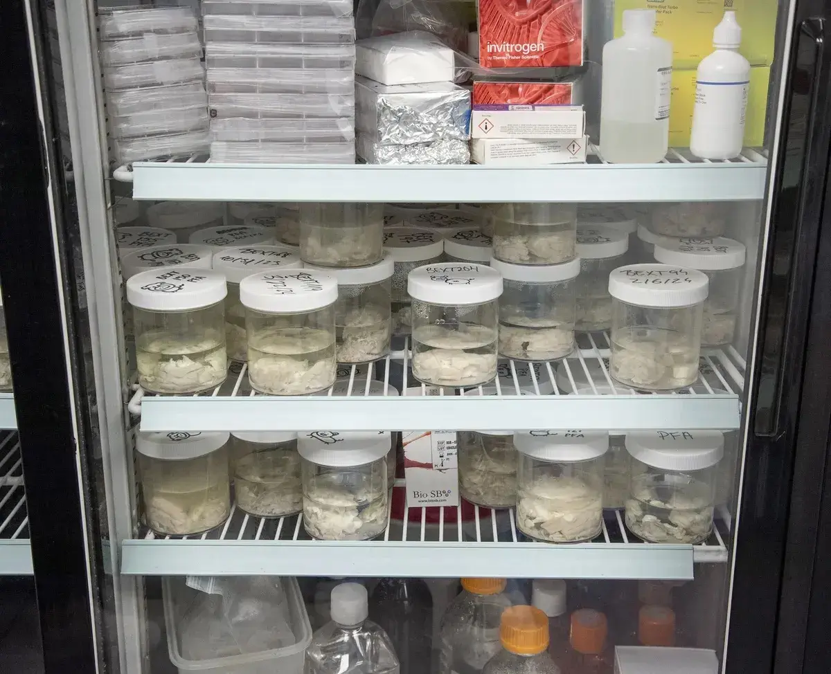 纽黑文 Bexorg 研究实验室的冰箱里存放着罐装猪脑。图片来源:彭博商业周刊