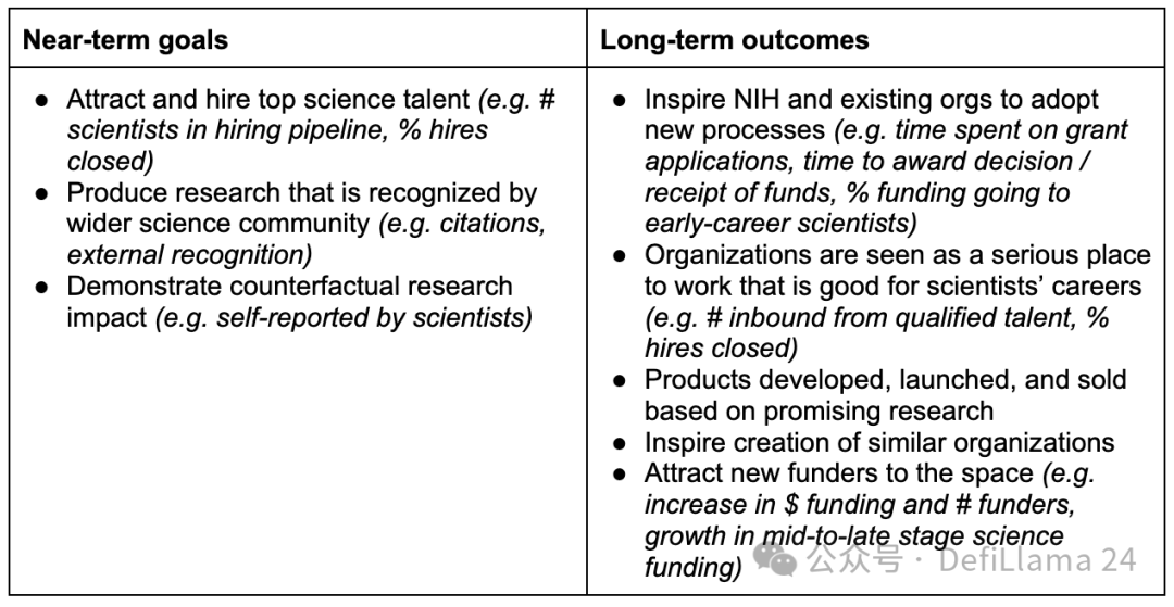 相比之下,在加密原生方法中,支持者希望创造全新的公共产品资助方式。虽然他们与改善科学进步、吸引顶尖人才并将研究成果推向市场的长期愿景相同,但他们的策略不同。他们的变革理论可能如下所示: