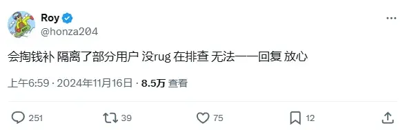 DEXX 创始人个人信息也被扒出。DEXX 创始人 Roy(@honza 204)随后针对被盗事件回应表示:「会掏钱补,隔离了部分用户,没 RUG,在排查,无法一一回复,放心。」