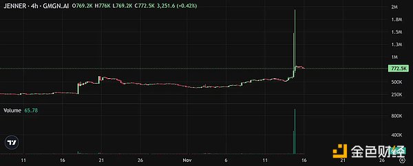 目前,以太坊上的 $JENNER 代币只有大约 10 万美元的市值,而最高峰时,市值大约为 800 万美元。