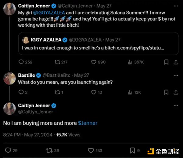 这两位投资者声称因投资 JENNER 代币而损失了超过 56000 美元。在诉讼中他们提到,如果不是 Caitlyn Jenner 的公开宣传以及「虚假和误导性的陈述」,他们就不会做出这样的投资决策。他们还表示,Caitlyn Jenner 故意不向 SEC 进行注册使得缺乏足够的透明信息来评估投资风险。