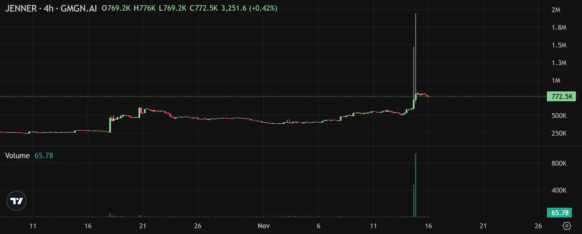 目前,以太坊上的 $JENNER 代币只有大约 10 万美元的市值,而最高峰时,市值大约为 800 万美元。