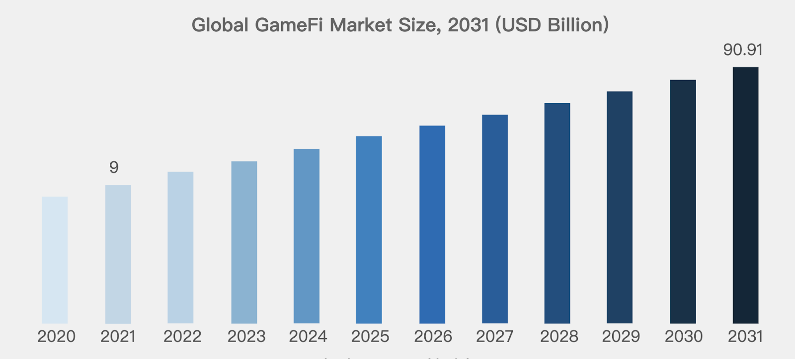 根据 Businessresearch 的预测,GameFi 将在 2031 年达到 909.1 亿美金规模,具备 5 - 10 倍的增长空间。
