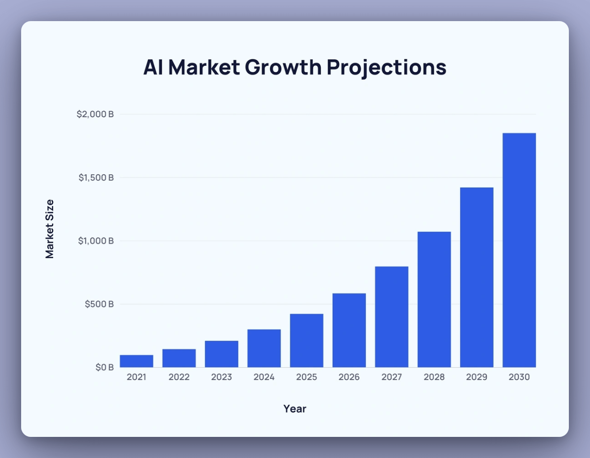 与此同时,多家咨询机构预测表明,到 2030 年, AI 市场增长规模将达到约 2 万亿美金。