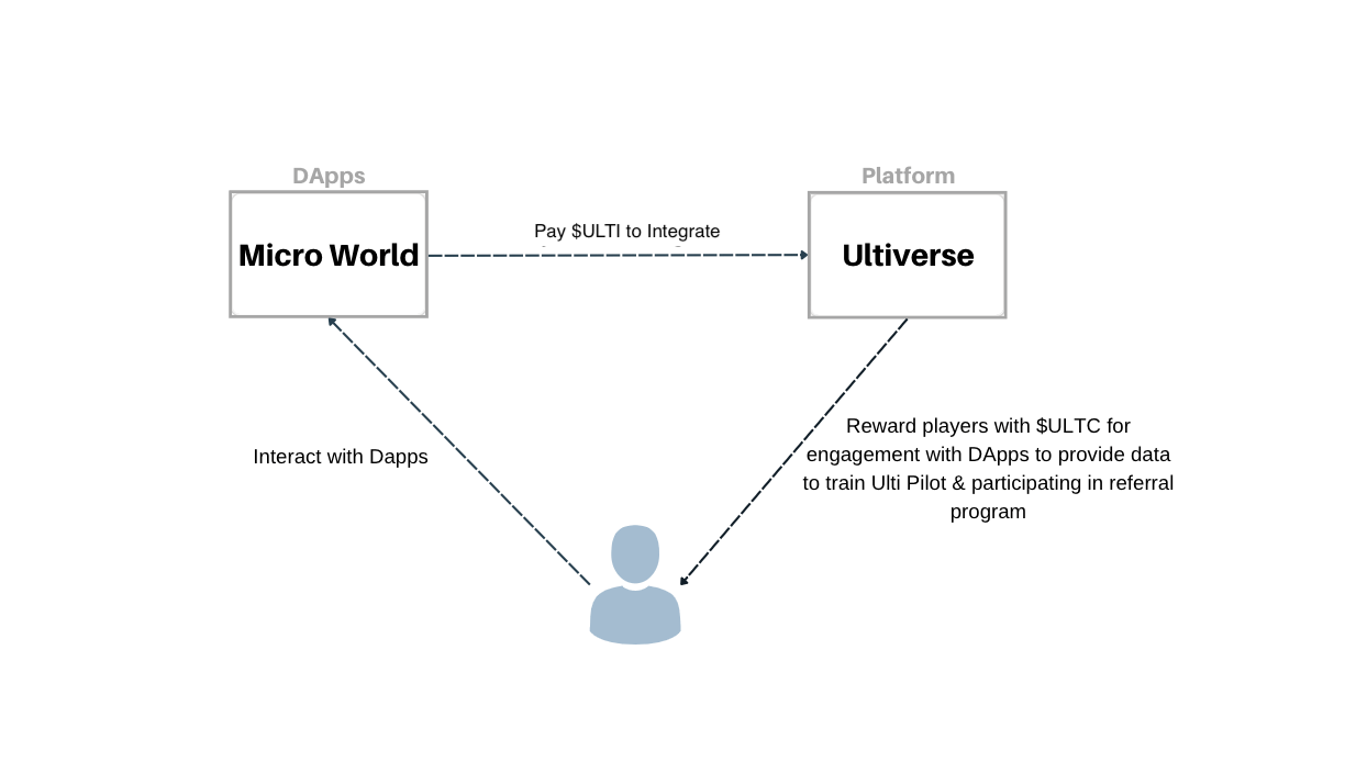 玩家参与Ultiverse的平台互动,通过互动,玩家将获得 $ULTI 奖励,并通过游戏互动的数据,通过Ultiverse 自带的AI引擎来迭代升级游戏的玩法,为用户带来更好的游戏体验。