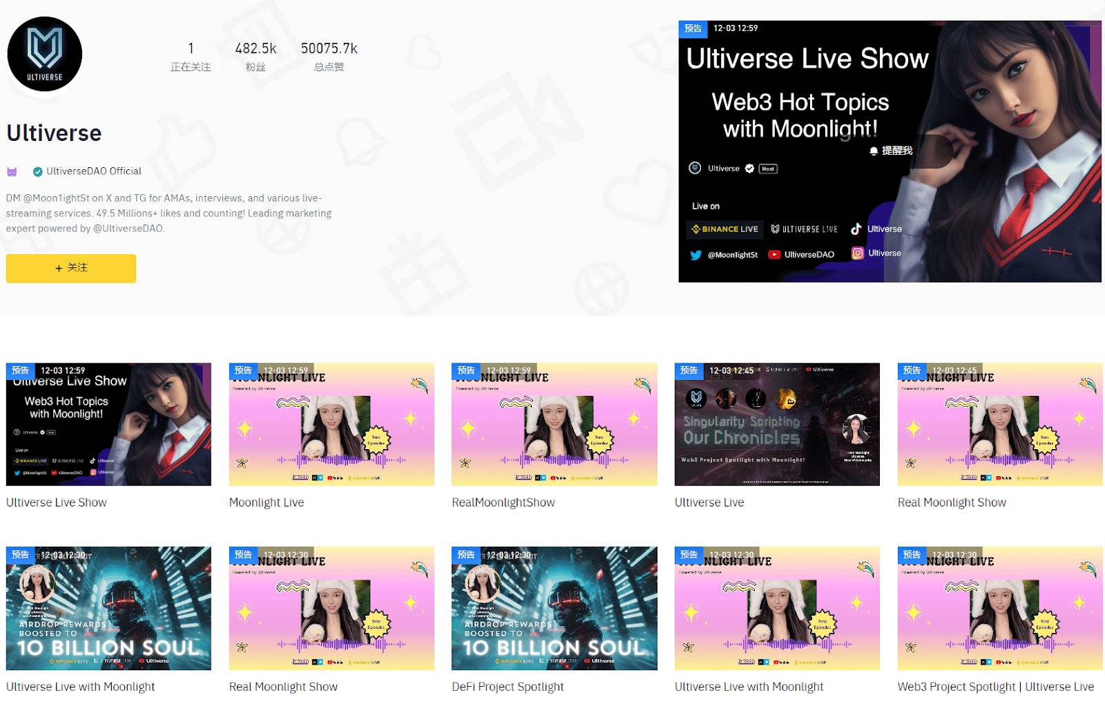 终极宇宙直播:面向 Web3 项目的综合媒体平台;48.2万多名粉丝,5000多万个赞;与 300 多位有影响力的人物合作。