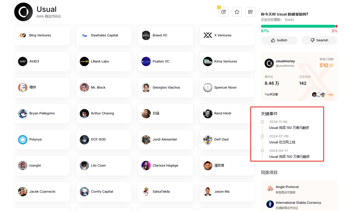 7个月后,Usual宣布完成150万美元新一轮融资,Comfy Capital、早期加密项目投资方echo、Breed VC创始人Jed Breed等参投,具体估值数据未披露。