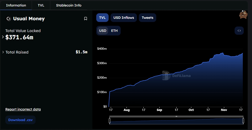 时至今日,Usual平台总TVL已超过3.7亿美元。