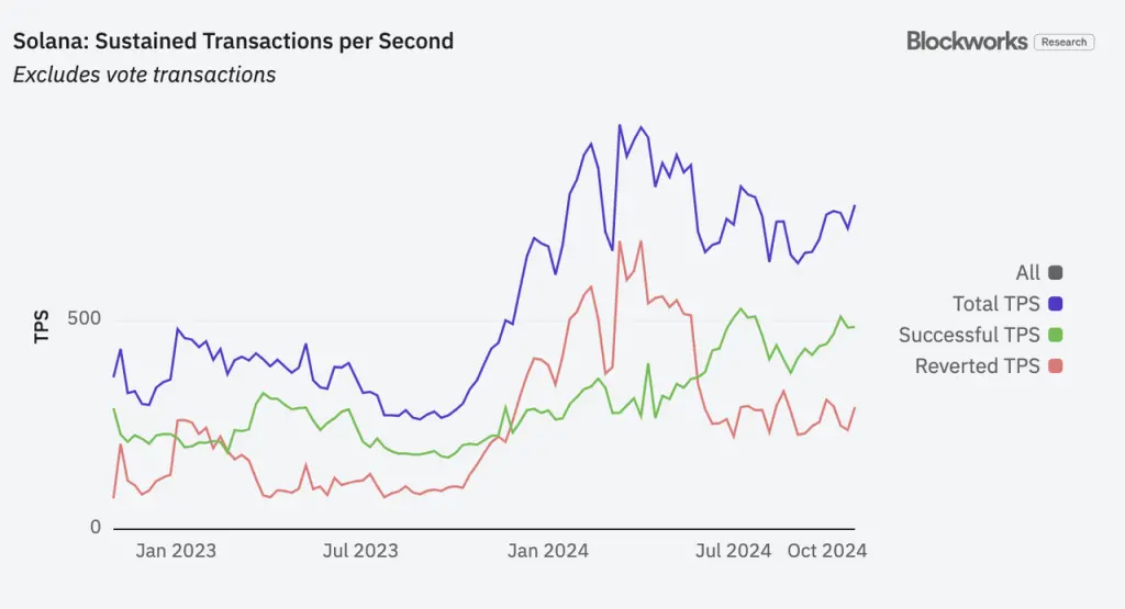 简单而言,swQoS启用后,区块生产者依据质押者的质押金额来确定其交易的优先级,拥有整个网络x%质押比例的质押者,最多可以提交x%的交易(关于swQoS的具体机制和对Solana的深远影响,读者可以阅读Helius的文章)。swQoS启用后,Solana网络的交易成功率迅速提高。