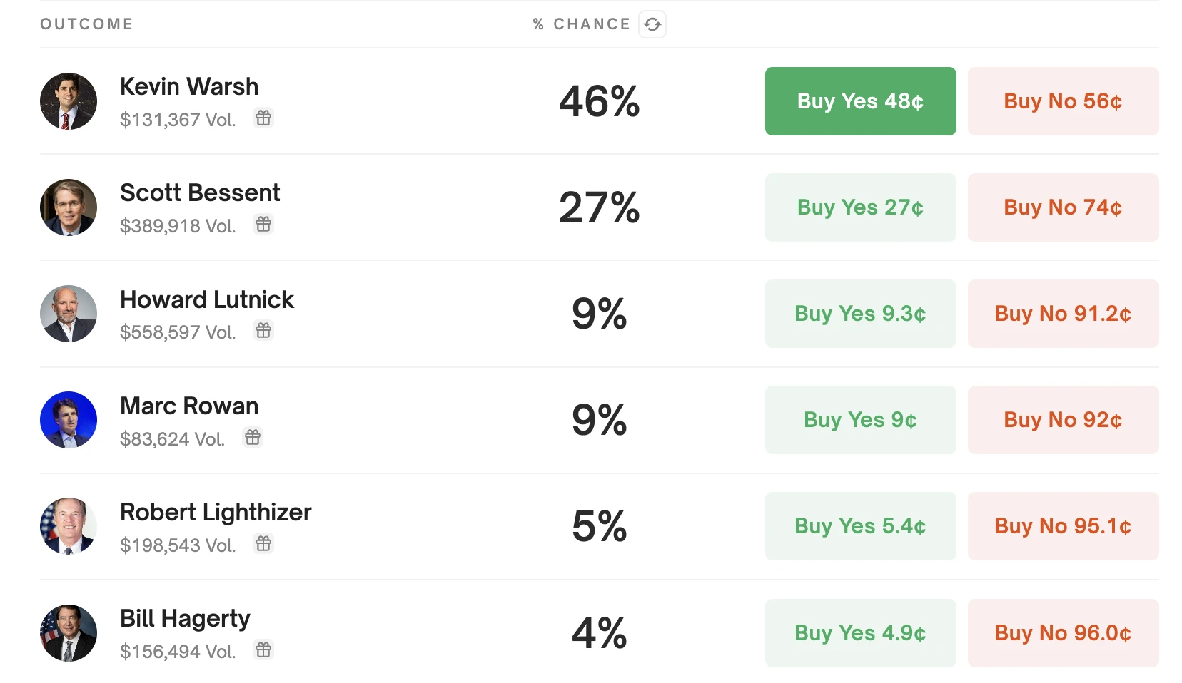 首先值得庆贺的是,当前提名概率最高的前美联储理事 Kevin Warsh(46% )很早以前就被视为加密货币的支持者 —— 甚至要早于特朗普的态度转变。