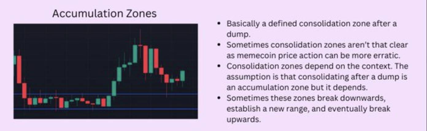 有时整合区域不太明显,因为 meme 币的价格走势可能更为不稳定。