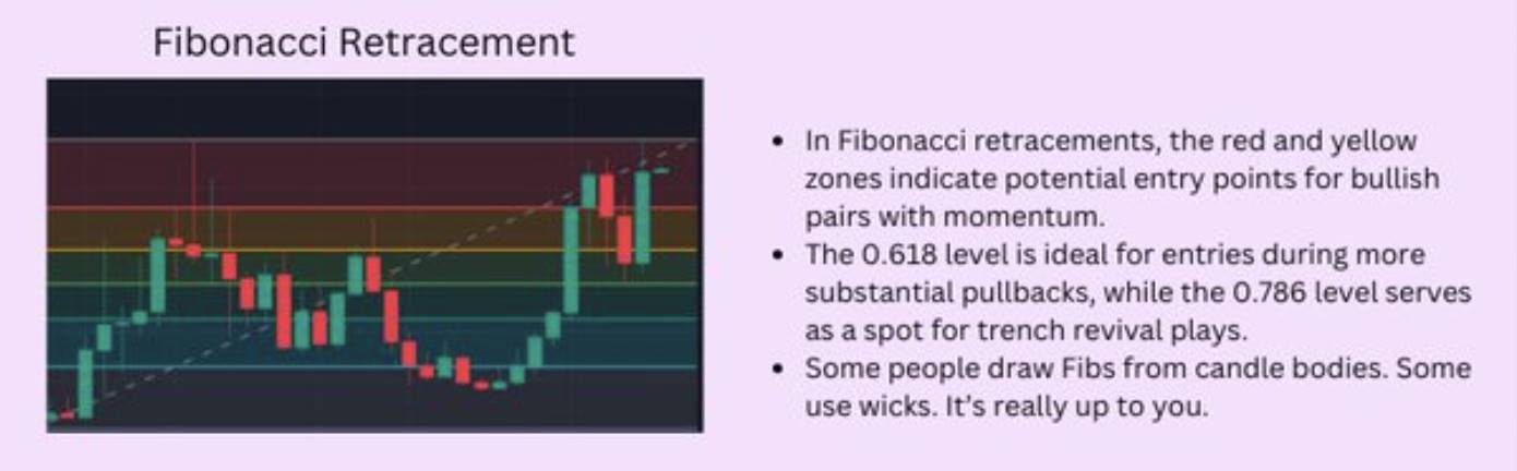 在斐波那契回撤中,红色和黄色区域通常被视为具有动量的看涨对的潜在入场点。