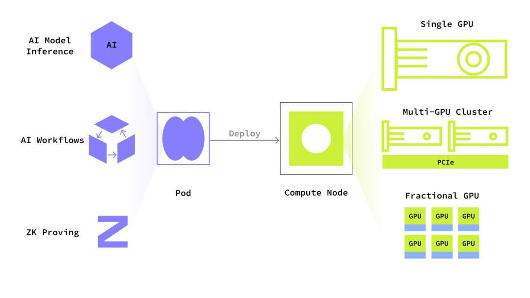 它基于 DePIN(去中心化基础设施网络)协议,允许 GPU 所有者自由地将其闲置计算资源提供给网络,而用户可以通过简单的 API/SDK 访问这些资源,轻松运行 AI 模型、ZK 证明等复杂任务。