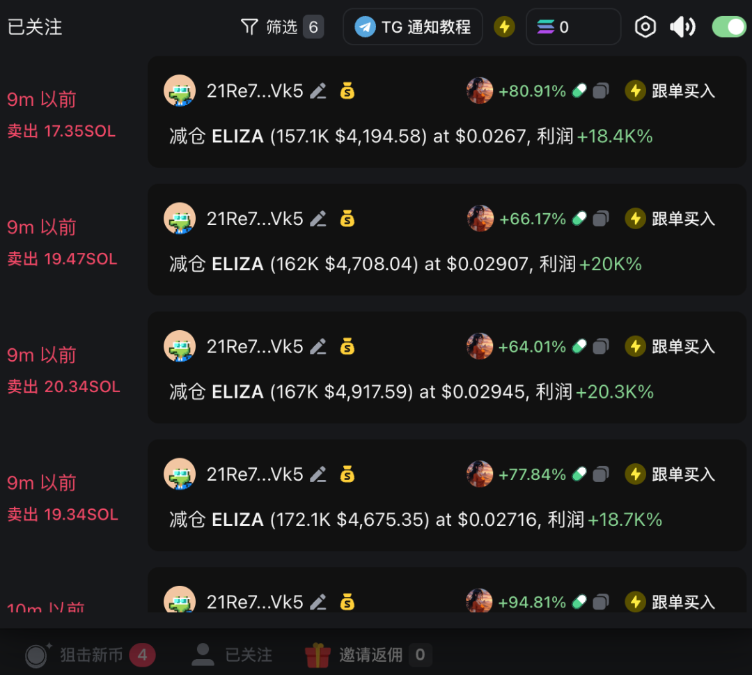 每天链上都有成百上千的 Meme 币上线,可能会出现聪明钱的集中买入,在选择关注对象时,最好考虑自己的交易习惯,避免关注过多钱包导致信息噪音。建议选择与自己风格相似的钱包进行跟踪,以确保信息流的高效性。