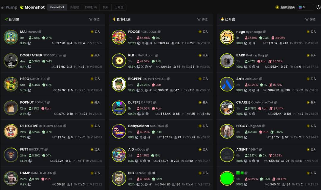 当一个新项目使用自动发币工具 pump.fun 成功部署后,用户可以使用 sol 去购买该项目的代币,当其市值达到 69000 美元时,该项目的流动性会自动从 pump.fun 添加到 Raydium。