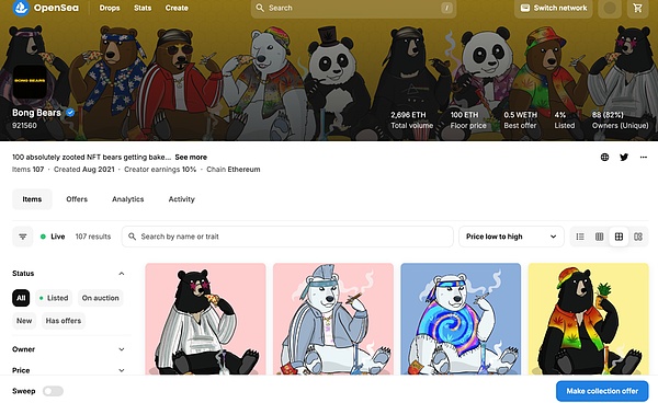 这个简单的设计吸引了大量用户长期持有,随后又推出了Bond Bears、Boo Bears、Baby Bears、Band Bears和Bit Bears等系列。