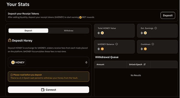 获得$HONEY之后,在BERP中质押,得到bHONEY再到Station质押到对应到Vault中获取$BGT收益,也可以直接作为交易保证金再BERP中进行衍生品交易。
