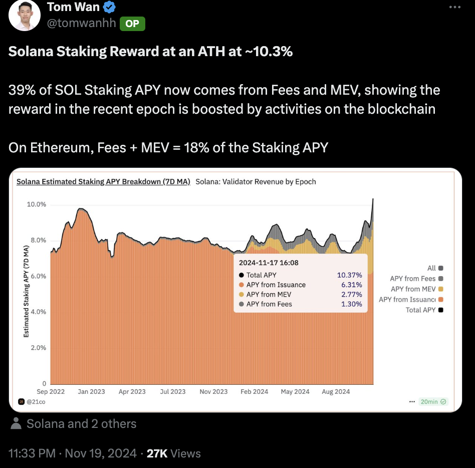 2.Solana 质押奖励约为 ATH 的 10.3%,@tomwanhh