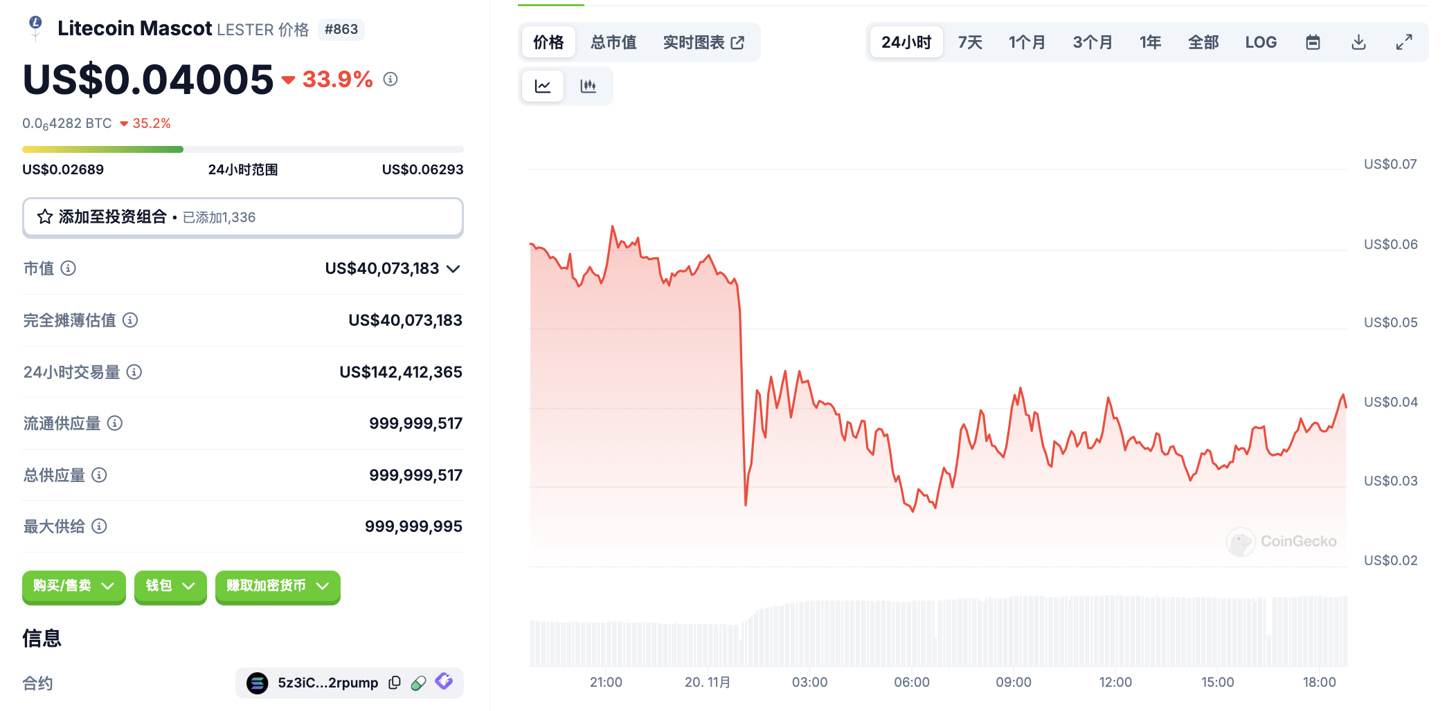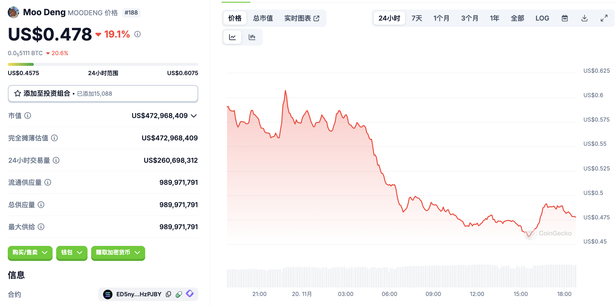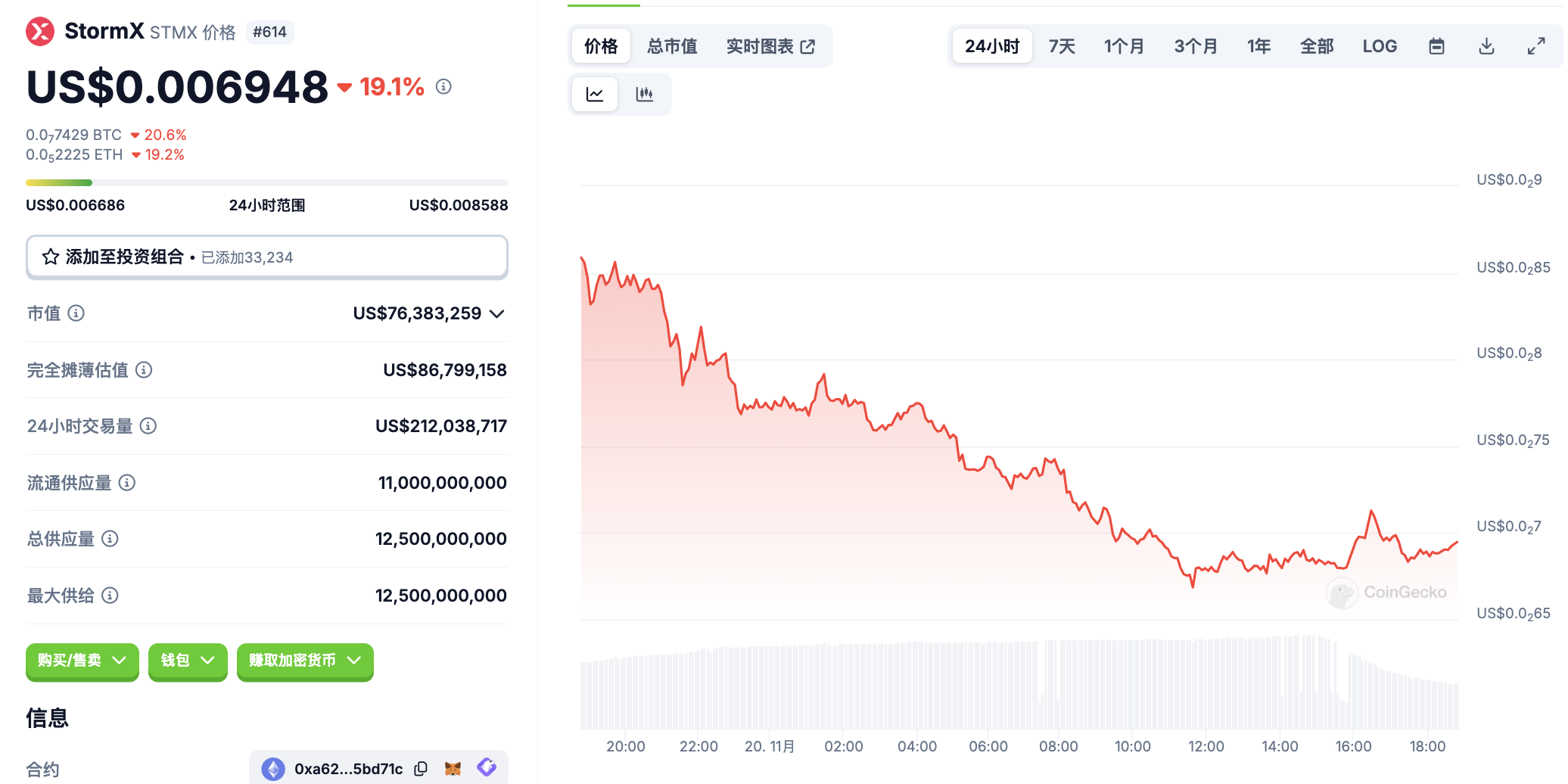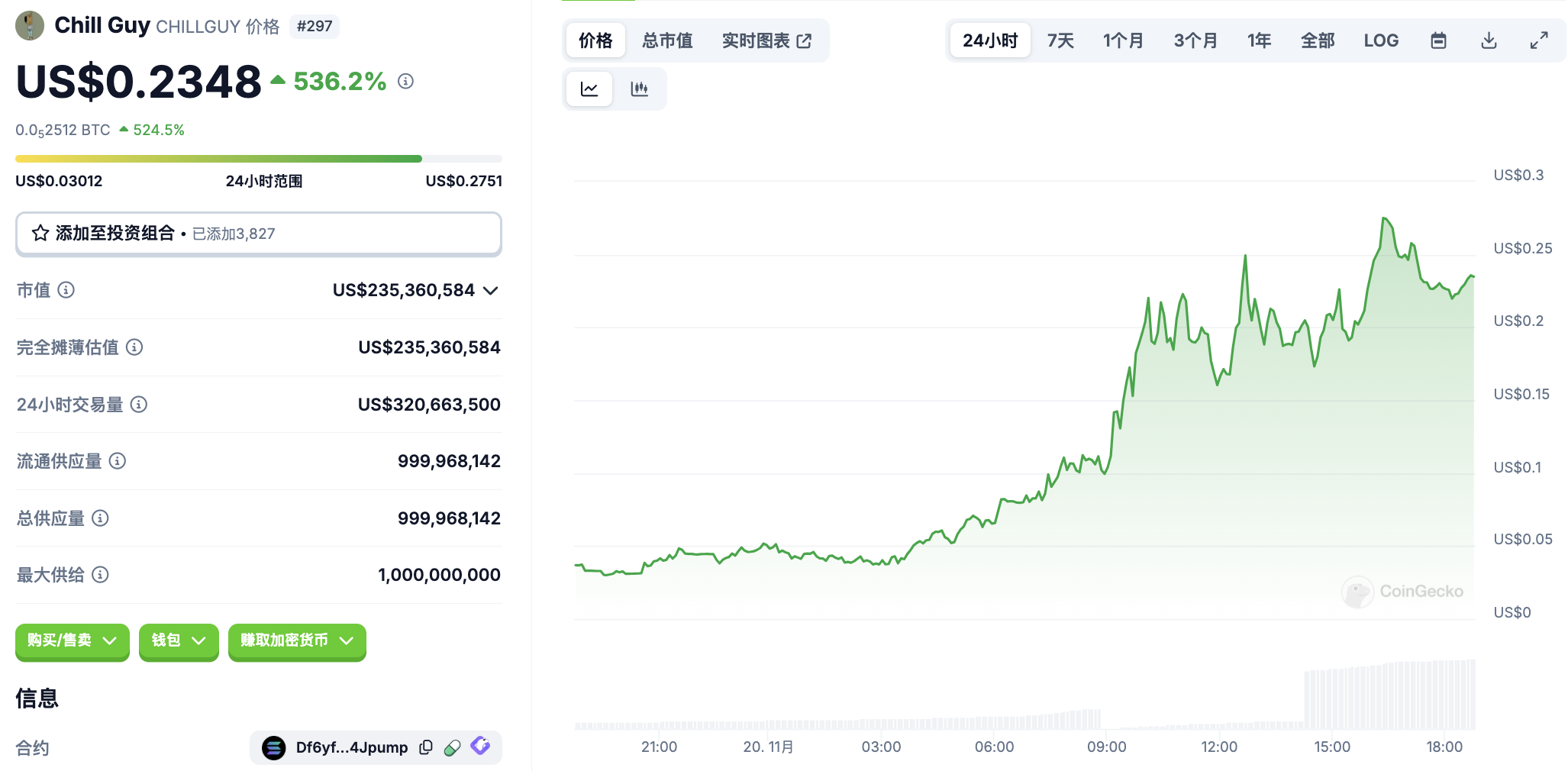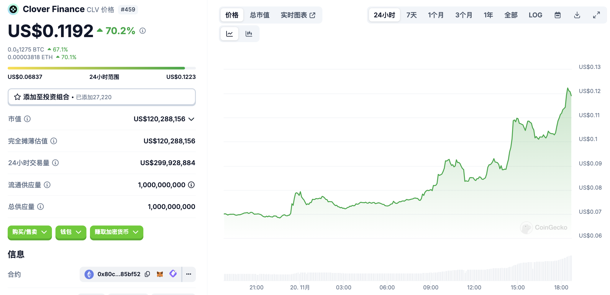 11 月 20 日代币波动情况,按交易量筛选并排列