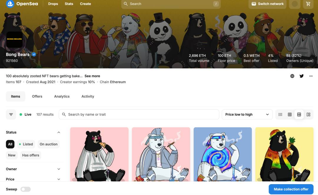 Berachain 的故事要从一个名为「抽烟熊」(Bong Bears) 的 NFT 项目说起。这个看似随意的 NFT 系列采用了类似 OHM 的 Rebase 机制:持有初代 Bong Bears 的用户可以获得后续系列的空投权益。