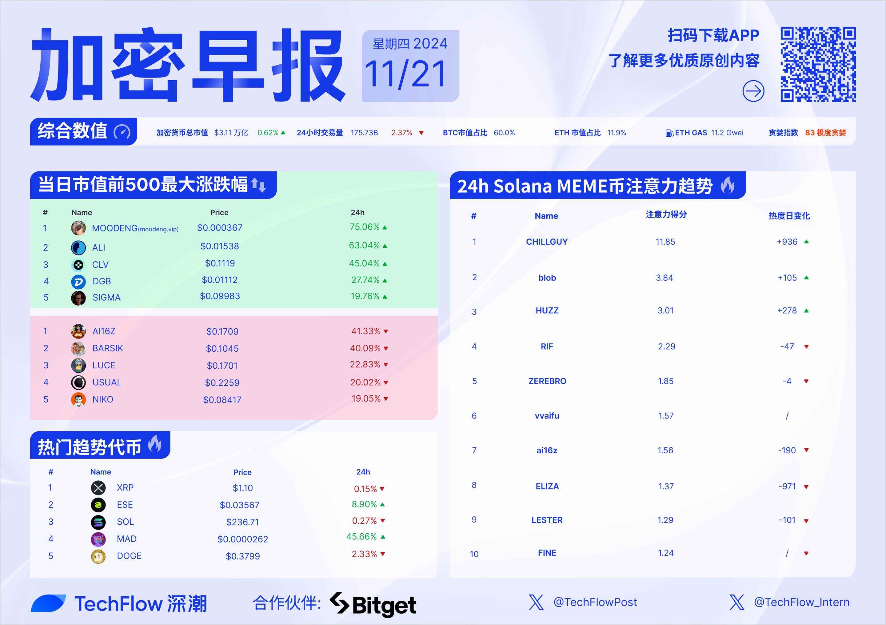 11 月 21 日,据 Arkham 监测,以太坊创始人 Vitalik Buterin 地址 vitalik.eth 将 0.082 枚 ETH(约 249.63 美元)兑换成 30303 枚 ANON。