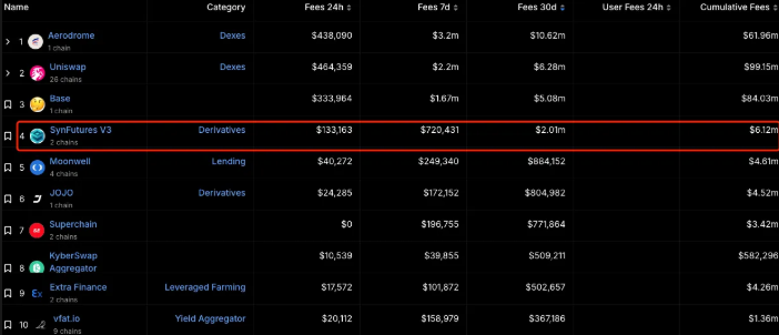 让我们先看看 SynFutures 在 Base 衍生品赛道的数据表现: