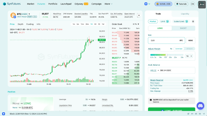 SynFutures 的 oAMM 通过允许 LP 将流动性添加到指定价格区间,极大的提高了 AMM 的流动性深度和资金利用效率,在支撑起更大、更多交易的同时,为 LP 创造更多的手续费收入。从其文档可以看到,其资金效率最高可达原来的 26,666.6 倍。