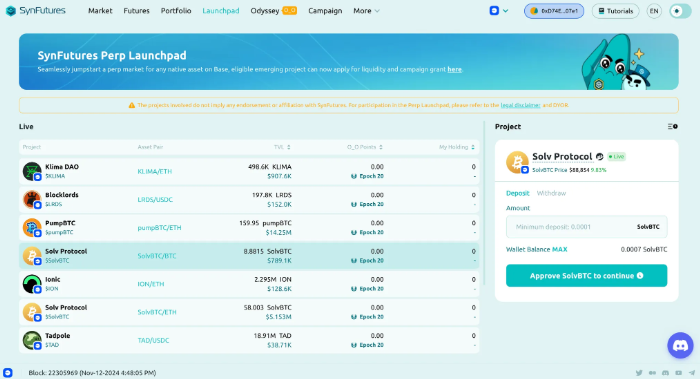 而除了模型本身的特点外,SynFutures 还参考 Pump.fun 的模式,推出业界首个衍生品永续合约发行平台。过去一年,应该说最赚钱的赛道就是资产发行了,从符文到铭文,从 Pump.Fun 到 DAO.FUN,无一不在持续的创造财富效应,吸引更多的用户进场,这不免让一些坚信区块链价值的朋友感到虚无。但这就是这个行业当前阶段的真实,谁能做上资产发行,吸引市场关注,创造财富效应,谁就能趁势而上,成为弄潮儿。不管是这一阶段 Solana 的成功还是 Pump.Fun 上亿美金的收入,都是这一模式的最好证明。而 SynFutures 近期推出的 Perp Launchpad,正是基于自身模型创新和新的资产发行方式打造的,能为更多链上 Degen 玩家开启更多新玩法的创新产品。