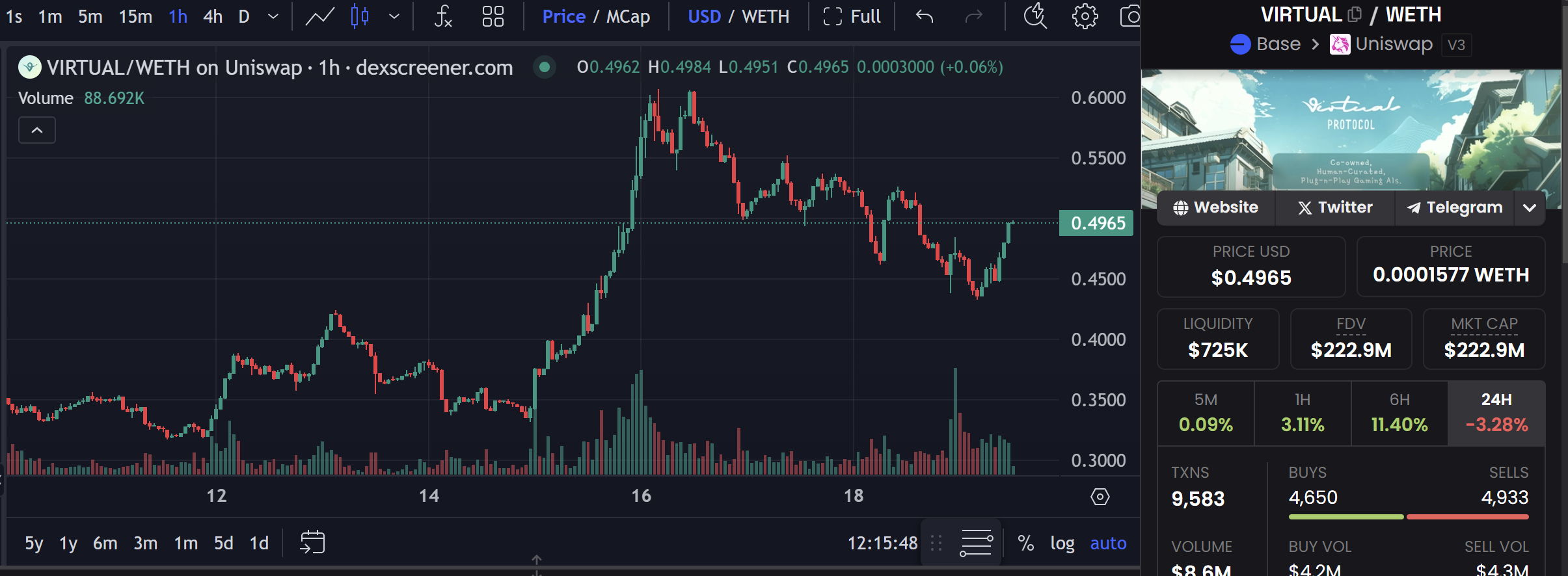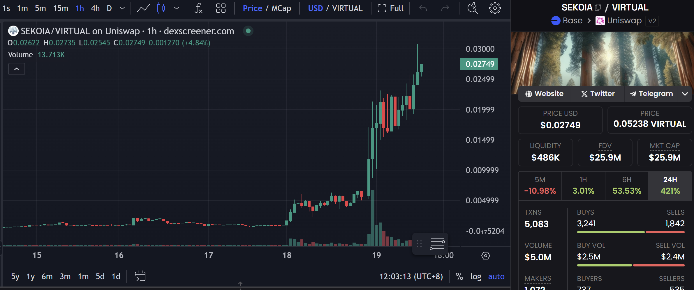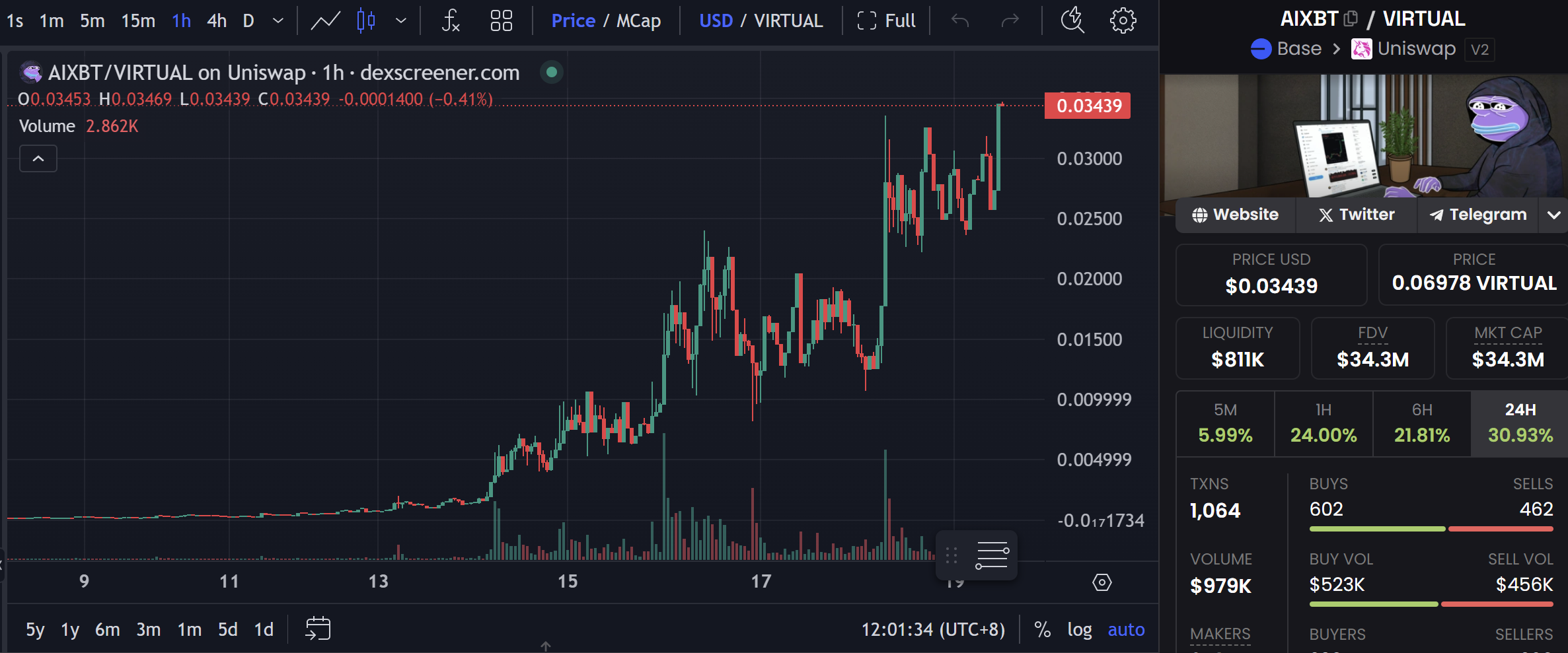 目前在 Base 的 Virtuals 平台上排名第三,市值已经突破了 2000 万美元。