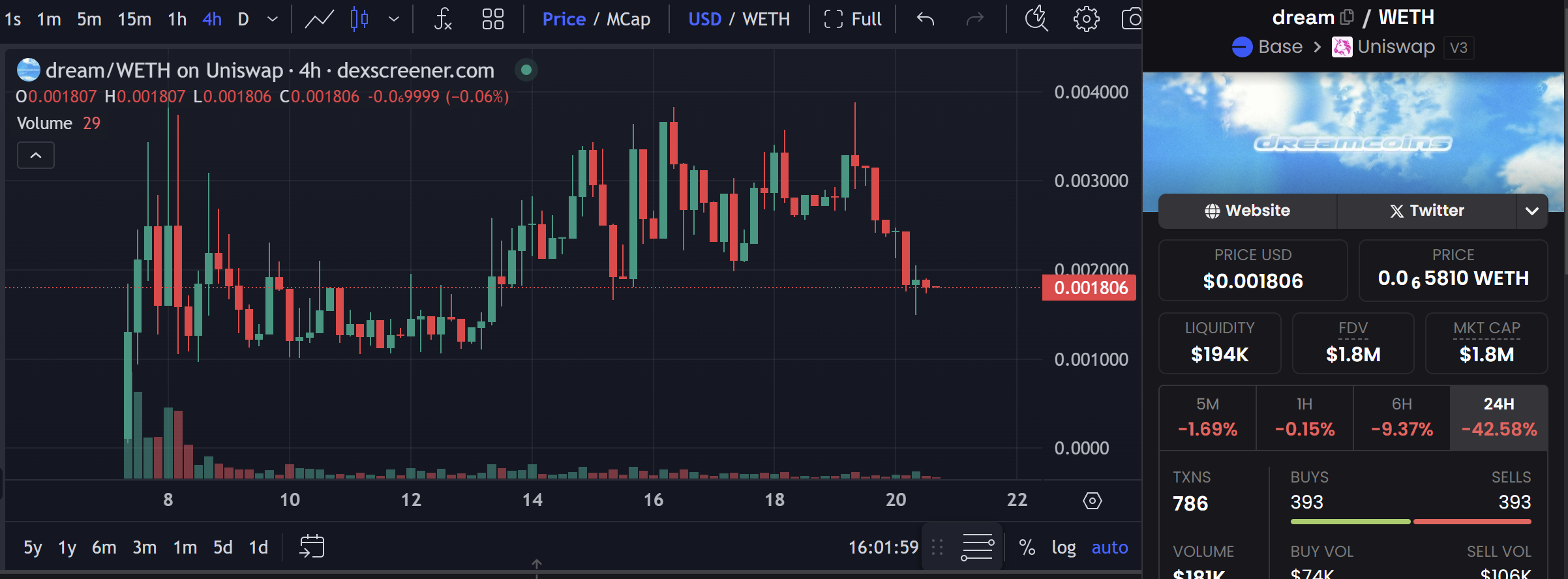除了 Virtual 这样的 AI Agent 发射平台,base 也有自己的 pump.fun。Dreamcoin.fun 是一个基于 Zora 的 wow 协议的代币发射平台。有意思的是 dreamcoin 有点「周公解梦」的味道,在 dreamcoin 中输入你的梦境,即可创造出「解梦」后的代币。平台收取的手续费将会用于回购和销毁 dreamcoin 的创始代币 DREAM。平台币 DREAM 没有太多关注,目前市值还在 200 万左右苦苦支撑。